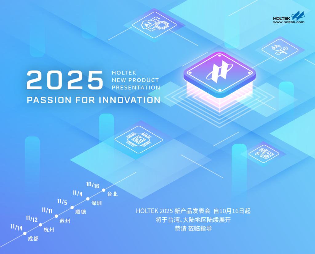 专业单片机IC设计领导厂商合泰半导体(HOLTEK)将于10月16日至11月14日于台湾及大陆地区巡回展开2025年新产品发表会,首场将于10月16日假台北雅悦会馆举行。合泰半导体创新产品技术发展,引领智能生活并促进环境永续。本年度新产品发表会将以「智慧赋能引领永续发展」为核心主轴,联结智能控制与边缘计算,构建完善智能生活体系,主题涵盖:智能生活与物联网、绿色能源、Edge AI、Arm® Cortex® MCU与外设IC、HT32开发工具等之全新技术与产品。